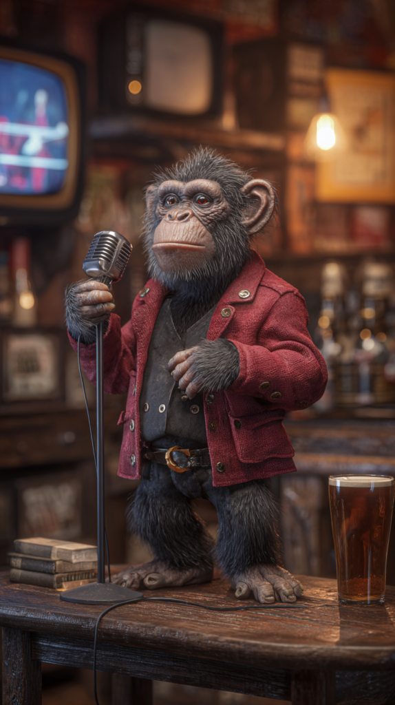 An animated fever-dream of a universe where chimps quote 80s rap like scripture, gorillas debate modern culture, and date with the grace of a sledgehammer, and every conversation is marinated in lager and questionable life choices.