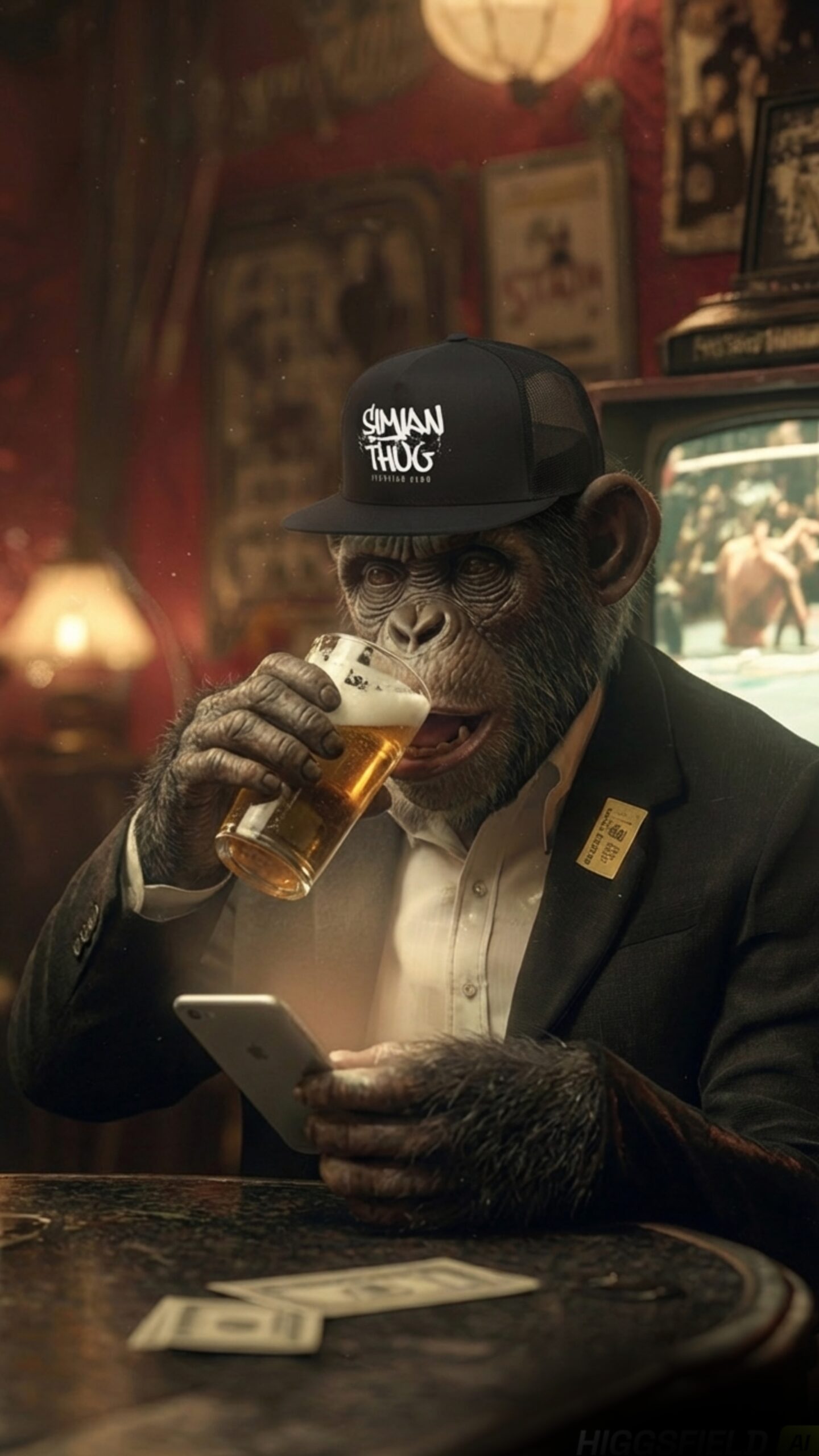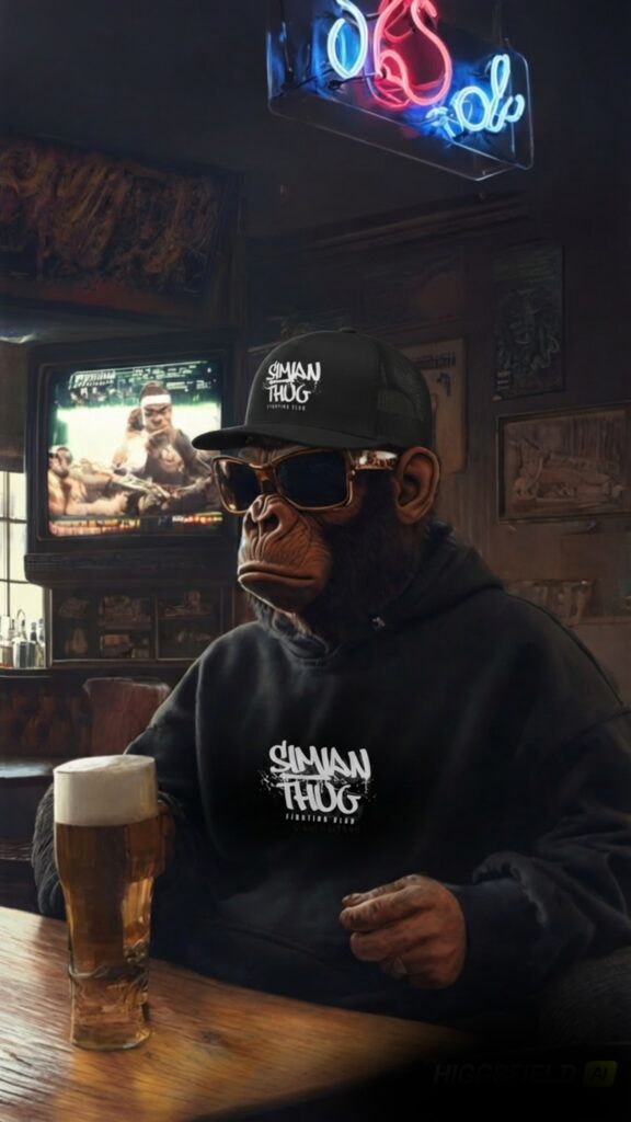 Welcome to a forgotten working men’s pub, where the bartops are always sticky, but the fights are always on the telly. Where the fruit machine has taken a punch, and the locals just happen to be hyper-evolved, hoodie-wearing, attitude-heavy apes.